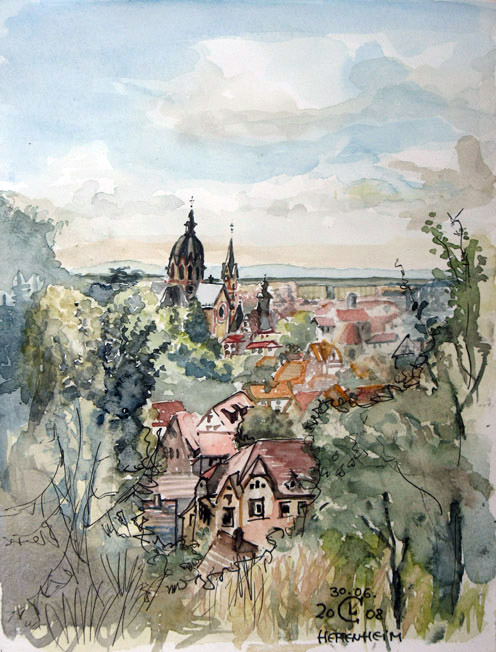 CL 30.06.2008 Stadtansicht von Heppenheim mit Peterskirche