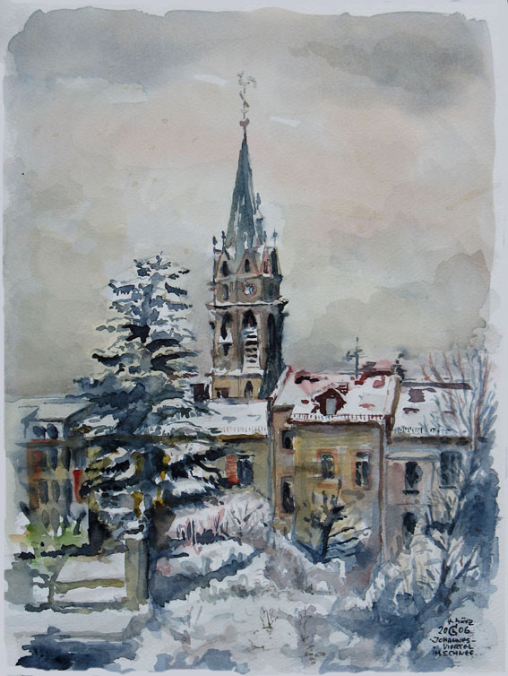 CL 04.03.2006 Johanneskirche im Schnee, von der Viltoristr.36 aus; Darmstadt.