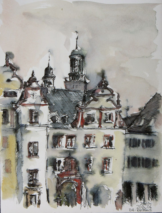 CL 01.04.2006 Rathaus am Marktplatz im Regen, Darmstadt